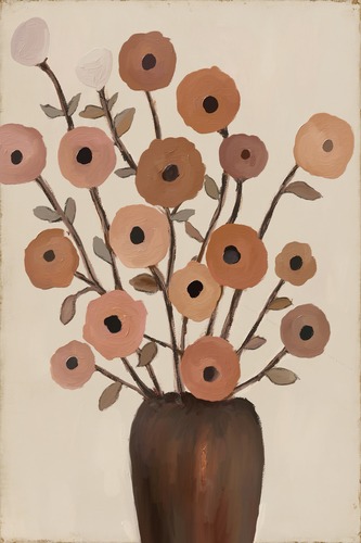 Premium Framed VintageInspired Flower Vase Warm Earth Tones Illustrations Fine FarmhouseCountry Decorative Rustic Vintage Antique Classic Bedroom Gold