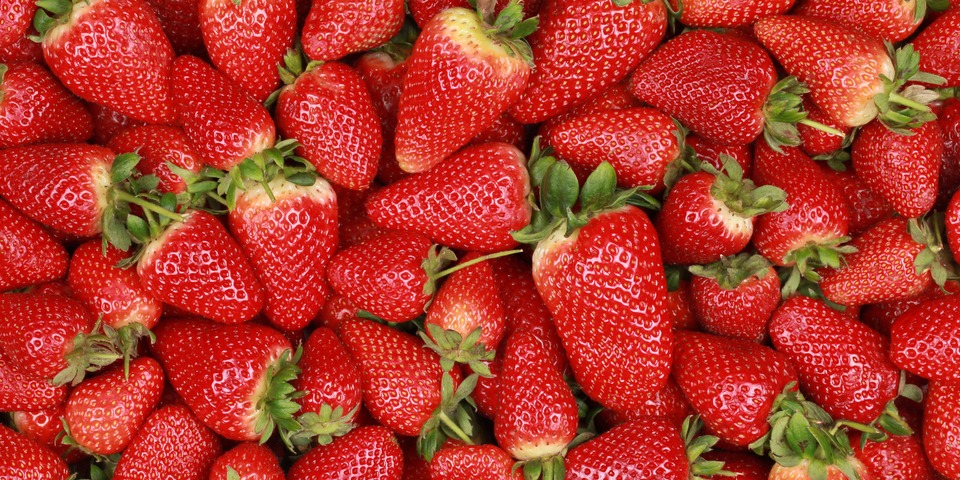 Collection of Freshly Harvested Strawberries ming a Background with Copy Space Stretched and Framed