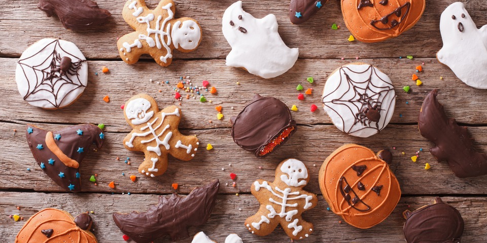 Festive Gingerbread Halloween on The Table Horizontal View from Above Stretched and Framed