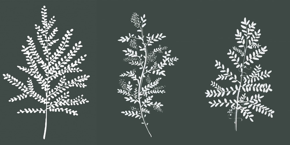 SUNSCAPE Framed Botanical Silhouette White Leaf Patterns on Dark Green Background Illustration Minimalist Living Room Bedroom and Office BLACK