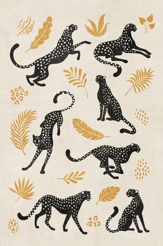 Framed Leopard Pattern Playful Animal SilhouetteIllustrations Decorative Living Room Bedroom Office WHITE