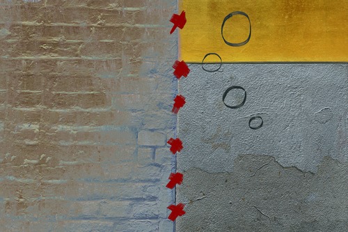 Framed Red Dots with Yellow Silver Black Color Blocks Abstract Brushstroke Digital Graffiti Street Minimalist Urban Living Room Bedroom Office