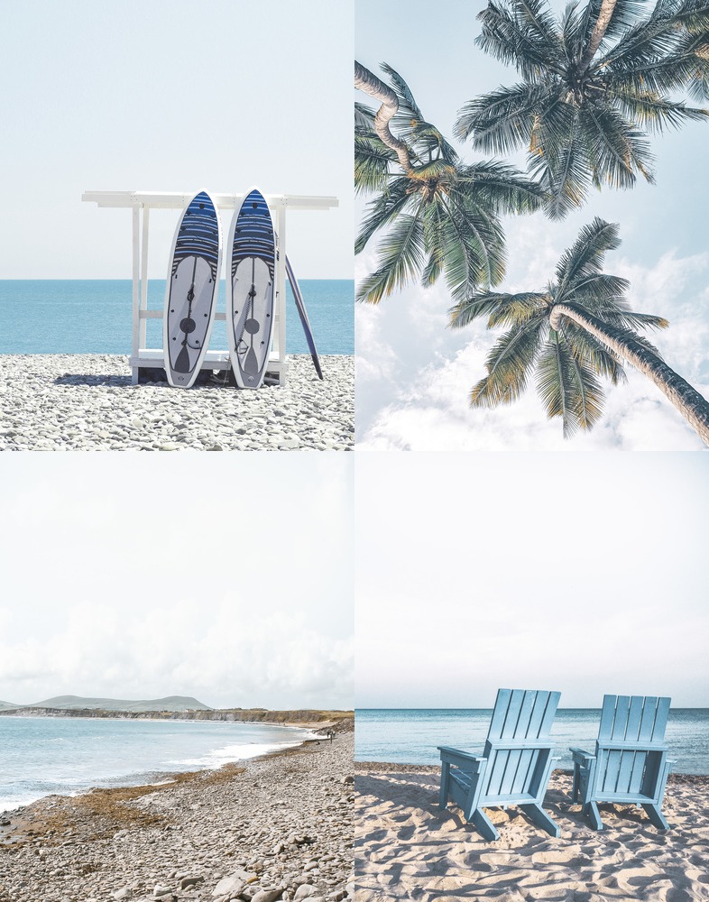 Framed White Surfboard Tropical Palm Tree Beach Shore Set of Landscape Colorful Nature Wilderness Décor Living Room Bedroom White