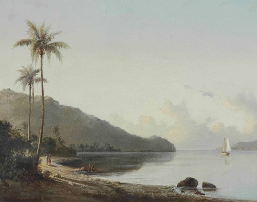 Framed Poster Tropical Palm Tree Sailboat Ocean Nature Wilderness Illustrations Minimalism Decorative Multicolor CalmZen FloralBotanical Living Room Bedroom Office Black