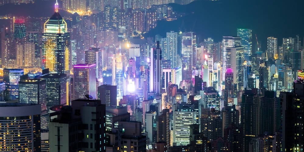 Framed Set Aerial View of Futuristic City Skyline Cities Cityscape Photography Realism Scenic RelaxCalm Dark Living Room Bedroom Office Black