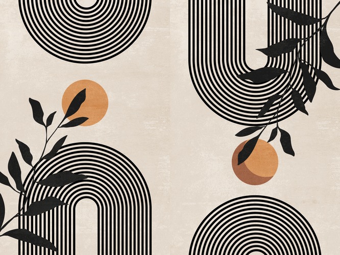 Framed Set Geometric Illusion Polygons est Plants Abstract Shapes Illustrations Decorative Bohemian Living Room Bedroom Office Natural