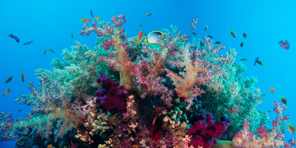 Colorful Underwater Offshore Rocky Reef with Coral and Sponges Stretched and Framed