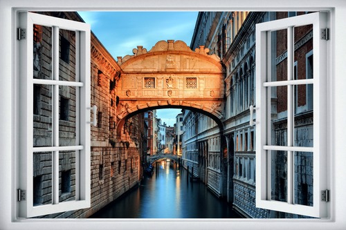 Removable Sticker Mural Window View Sunset Gondola Grand Canal Venice Italy Cityscape Nature Photography Realism Rustic Landscape Colorful Living Room Bedroom Office