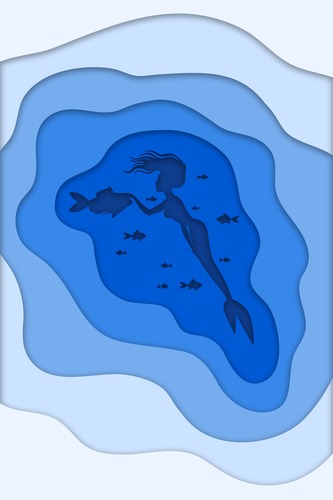 ColorBanner Framed Storybook Cutout Vibrant Blue Mermaid Fantasy SciFi Ocean Digital Nautical Fun Multicolor Living Room Bedroom Office White