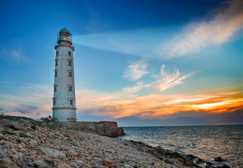 Lighthouse Searchlight Beam Through Sea Air at Night Seascape at Sunset Removable Mural SelfAdhesive Large paper