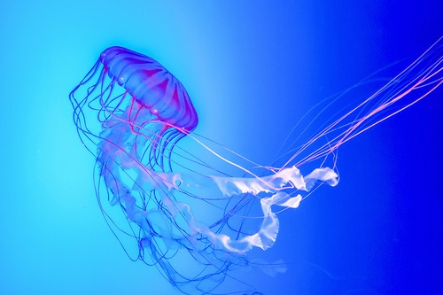 Framed Vibrant Neon Blue Pink Jellyfish Deep Sea Nature Animals Realism Rustic Scenic Landscape Wilderness Earth Colorful Living Room Bedroom Office White