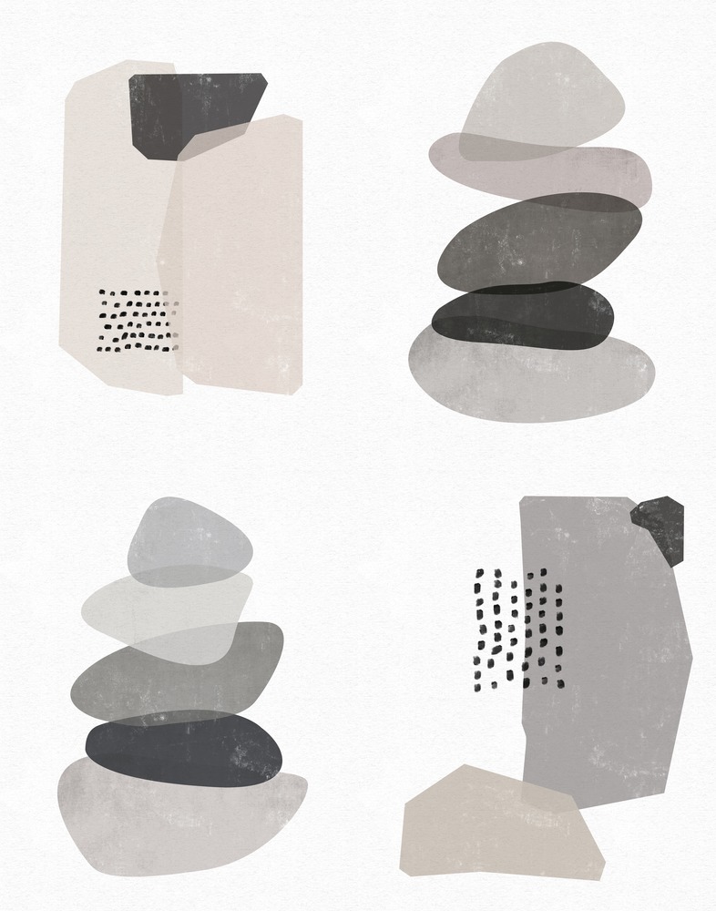 SIGNLEADER Set Decor Abstract Neutral Toned Stone and Rock Illustrations Chic Colorful Living Room Bedroom Office Unframed