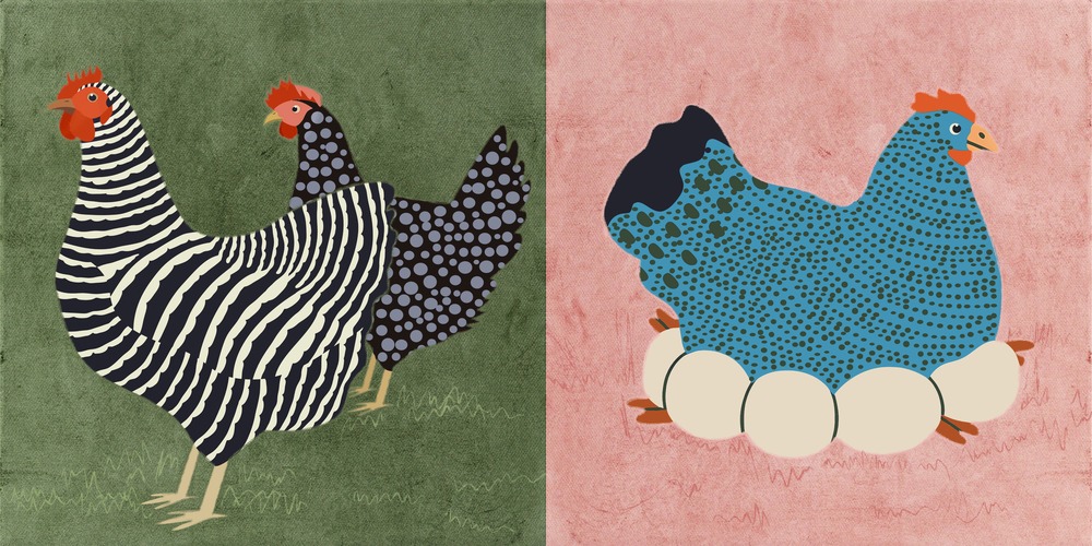 Framed Set Striped and Spotted Chickens Charming Folk Illustrations Minimal RelaxCalm Living Room Bedroom Office Natural