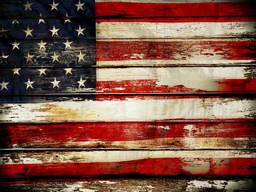 Ashbrook Framed Grunge American Flag with Brown Highlights Nature Wilderness Woodblock FarmhouseCountry Multicolor Warm Living Room Bedroom Office WHITE