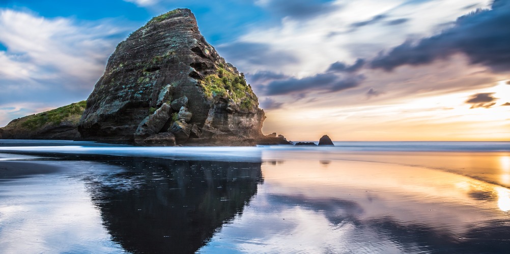 Framed s Piha Beach at Sunset Auckland New Zealand Home Stretched and Framed White