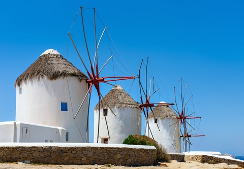 Traditional White Greek Windmills Popular Tourist Destination on Mykonos Island Greece Europe Removable Mural SelfAdhesive Large paper