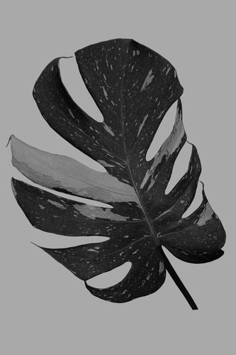 SIGNLEADER Framed Big Monstera Leaf on Gray Background Nature Plants Photography Chic RelaxCalm Dark Black and White Living Room Bedroom Office Black