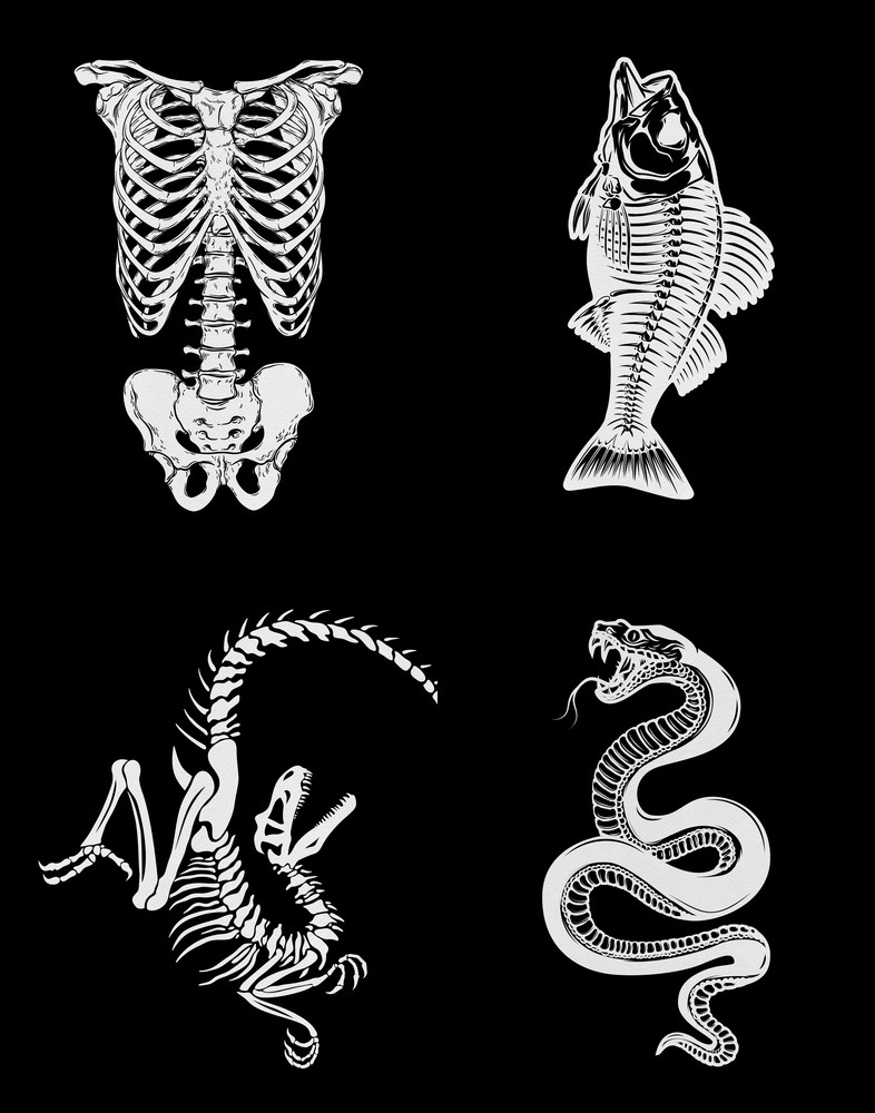 Poster Bathroom Decor Room Decor Multicolor Living Room Bedroom Office Human Skeleton Dinosaur Bones Fish and Snake Animals Nature Pop Black White