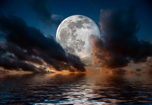 Removable Sticker Mural Full Moon Dark Sunset Dusk Ocean Astronomy Space Nature Realism Decorative Landscape Colorful Zen Living Room Bedroom Office