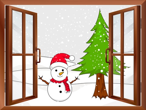 Cartoon Snowman and Christmas Tree Peel and Stick SelfAdhesive Removable Window View Sticker Mural