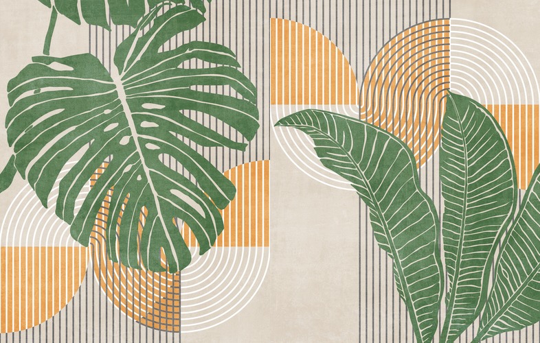 Framed MidCentury Tropical Monstera Palm Leaf Set of Landscape Abstract Geometric Décor Nature Wilderness Décor Living Room Bedroom Black