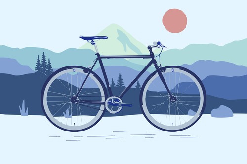 A Black Mountain Bike with Blue and Purple Outdoor Landscape Transportation Bicycles Illustrations Minimalist Colorful Living Room Bedroom Office