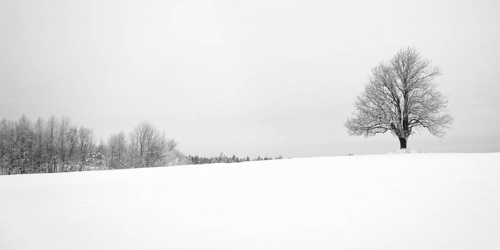 Framed Winter with Snow and a Lonely Tree in a Field Home Stretched and Natural