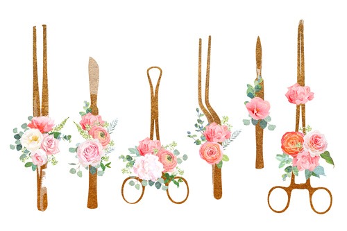 Doctor's Tools ceps Scalpel Flowers Medical Hospital Health Illustrations Floral Botanical Colorful Decorative Living Room Bedroom Office