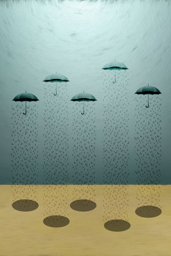 IDEAWALL Framed Surreal Floating Umbrella Sky Landscape Fantasy SciFi Abstract Illustrations Bohemian Scenic Living Room Bedroom Office White