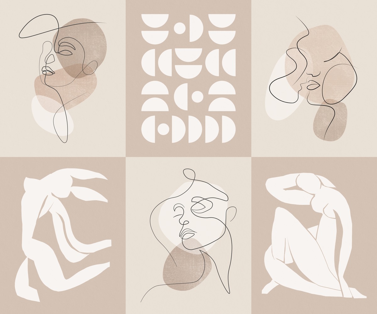 Ashbrook Framed Collage Set Henri Matisse Dancers Polygons Nature Wilderness Illustrations Decorative Colorful Living Room Bedroom Office White