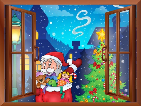 Cartoon Santa Claus Carrying Gifts Peel and Stick SelfAdhesive Removable Window View Sticker Mural
