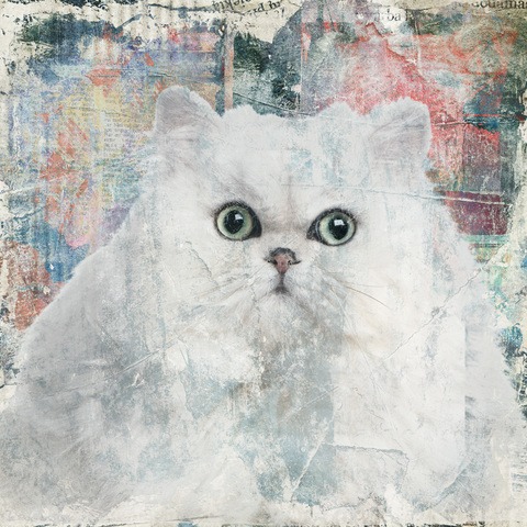 Square Cat Series A White Cat on Grunge Colorful Background