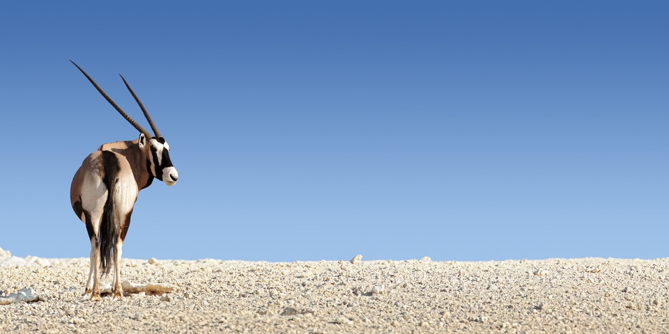 Gemsbok on White Rocky Soil Oryx gazella Kalahari South Africa Stretched and Framed