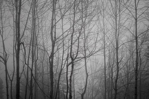 Mystical Winter Woods Black and White Bare Trees in Fog Nature Illustrations Chic Multicolor Living Room Bedroom Office