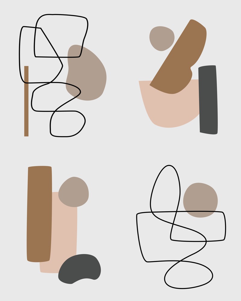 Woodrose Framed Collage Set MidCentury Pastel Geometry Symbol Abstract Shapes Illustrations Decorative Chic Multicolor Living Room Bedroom Office White