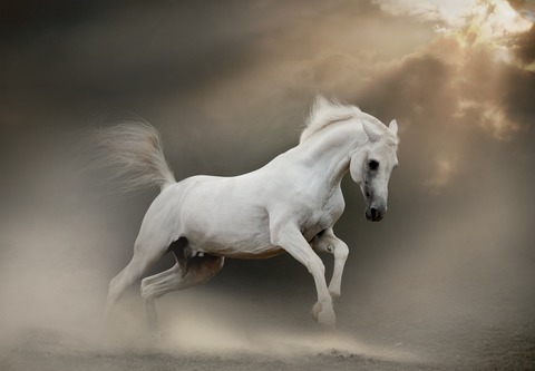 White Arabian Stallion in Dust Removable Mural SelfAdhesive Large paper