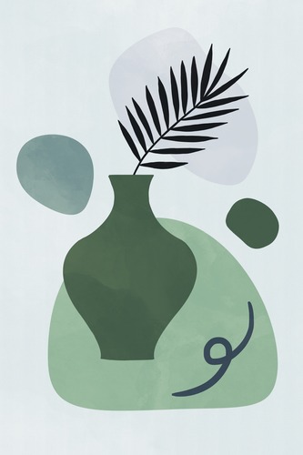 IDEAWALL Framed Palm Leaf in Vase with Green Oval Background Floral Botanical MidCentury Pastel Living Room Bedroom Office White