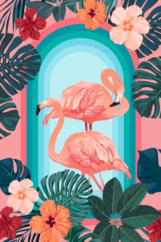 IDEAWALL Framed Jungle Flower Flamingo Teen Girls Decorative Posters Digital Colorful Multicolor Living Room Bedroom Office White