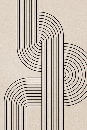 Woodrose Framed MidCentury Black Wave Ribbon Collage Abstract Shapes Digital Chic Decorative Multicolor Living Room Bedroom Office White
