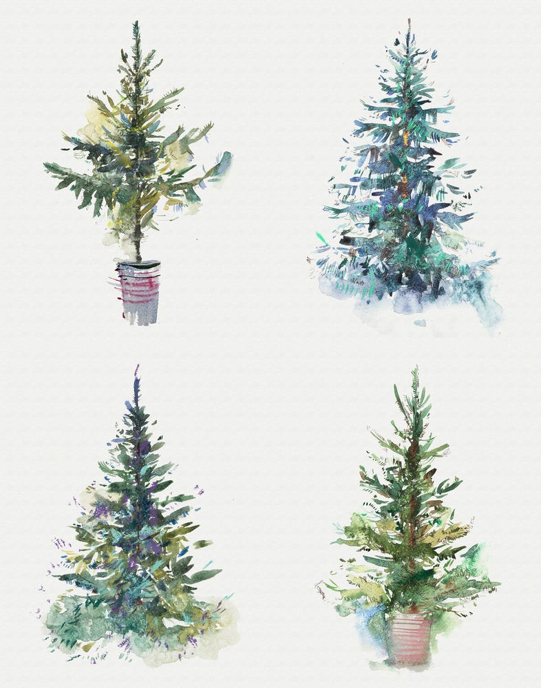 SIGNLEADER Framed Set Decor Christmas Evergreen Tree in Watercolor Illustrations Chic Colorful Living Room Bedroom Office White