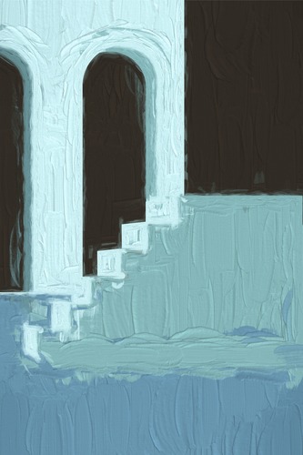Framed Greek Blue Paint Stroke Architecture Steps Abstract Shapes Illustrations Contemporary Minimal Urban Chic Living Room Bedroom Office Black