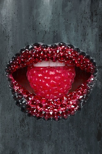 Framed Black and Red Glossy Sparkled Lips with Raspberry People Texture Photography Realism Glam Closeup Colorful Living Room Bedroom Office
