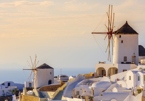 Famous View of Oia Village at The Island Santorini Greece in Sunset Rays Removable Mural SelfAdhesive Large paper