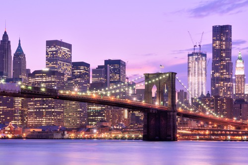 New York City Pink Sunset Bridge Architecture Cityscape Photography Realism Rustic Scenic Landscape RelaxCalm Colorful Living Room Bedroom Office
