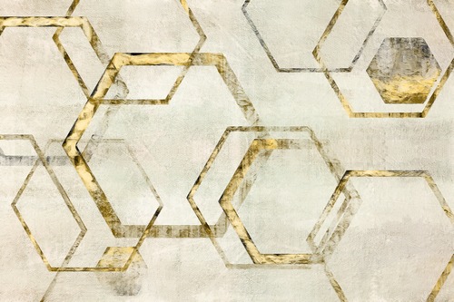 Framed Grunge Gold and Black Hexagon Collage Abstract Geometric Illustrations Shapes MidCentury Multicolor Living Room Bedroom Office Natural