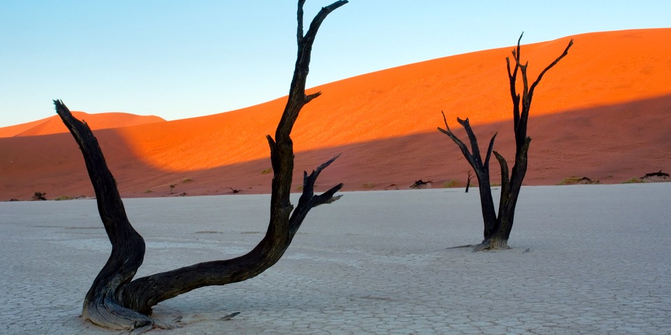 Petrified Trees Against Red Dunes Shot in Deadvlei Naukluft National Park Stretched and Framed