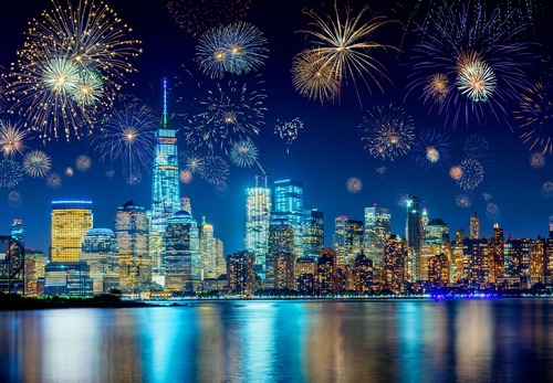 Removable Sticker Mural New Years Fireworks Neon New York City Cityscape Landmark Photography Realism Decorative Landscape Zen Urban Chic Living Room Bedroom Office