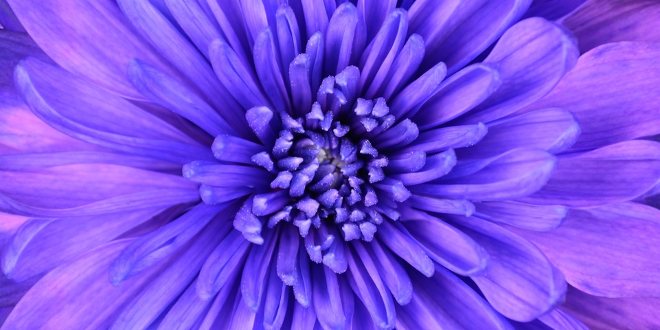 Detail of Blue Chrysanthemum Flower Head Closeup Background Stretched and Framed