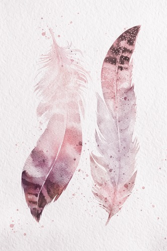 Pink White Watercolor Pastel Bird Feather Animals Wildlife Illustrations Rustic Nature Bohemian RelaxCalm Wilderness Living Room Bedroom Office