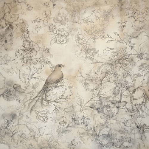 Framed Vintage Bird and Floral Sketch Delicate Pencil Drawing with Nature Elements Illustrations Decorative RelaxZen Living Room Bedroom Office NATURAL